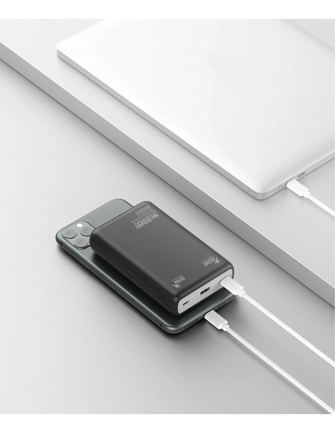 BIGEE power est très simple à utiliser, branchez et le chargement commence. Deux ports USB-C de 65W et 30W et un port USB-A de 22.5W vous donneront la possibilité de recharger tous types d’appareils peut importe le câble que vous utiliserez. Avec BIGEE sont inclus deux câbles de charge, un USB-C / USB-C et un câble USB-A / USB-C afin de profiter de votre batterie dès son déballage.