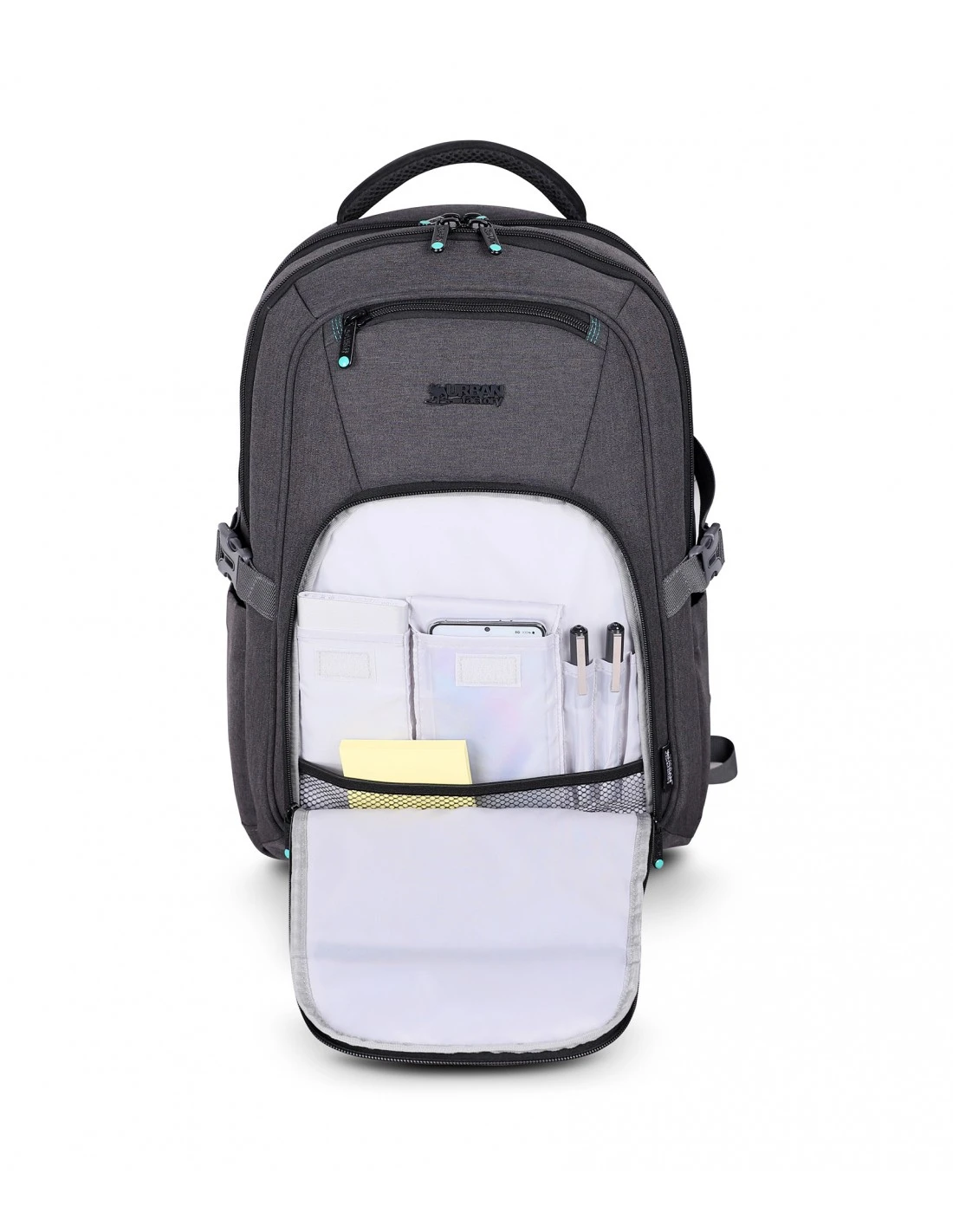 Ce sac à dos de voyage possède un compartiment dédié pour votre ordinateur portable jusqu’à 17.3’’ sécurisé par un une sangle de maintien et un compartiment dédié à votre tablette jusqu’à 10.5’’. Vous pouvez aussi transporter tous vos accessoires et vos documents grâce au compartiment organiseur. Un compartiment central avec poches Mesh est inclus pour le rangement des câbles et des gros accessoires comme votre casque d’écoute ou encore votre alimentation externe. Sa conception innovante est adaptée aux voyageurs les plus exigeants ayant besoin de place et de confort. Ce sac à dos est fabriqué à partir de PET recyclé (r-PET) jusqu’à 70%.
