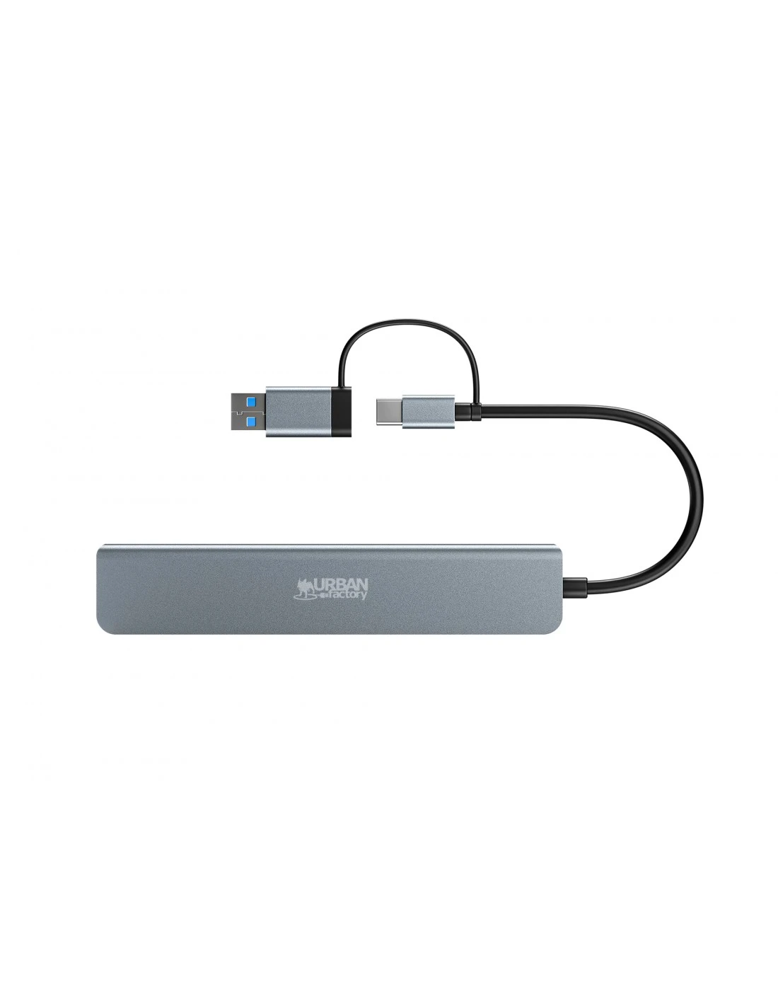 Hub USB-A/C avec 5 ports USB-A 3.0 et 1 port USB-C. Compatible avec les Notebook, tablettes et smartphones équipés d’un port USB-A ou USB-C. Les 5 ports USB-A sont de type 3.0 avec une vitesse de transfert De 5 Gbps. Le hub possède aussi 1 port USB-C dédié au transfert de donnée jusqu’à 5 Gbps et 1 port de charge DC pour adaptateur 5.0V. La prise de connexion à l’ordinateur est convertible soit en USB-A soit en USB-C. Le hub est fourni avec un adaptateur secteur (DC 5V) afin de profiter pleinement de ses capacités. Il possède une finition en aluminium gris sidéral.