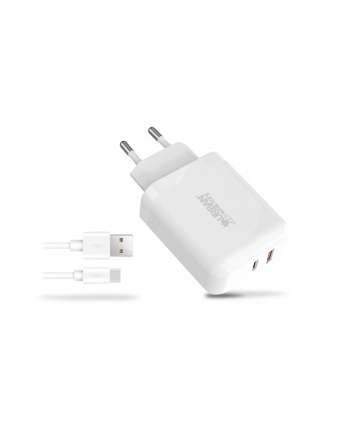 Urban Factory POWEE: CHARGEUR SECTEUR USB-C 45W / USB-A 18W AVEC CABLE USB-C