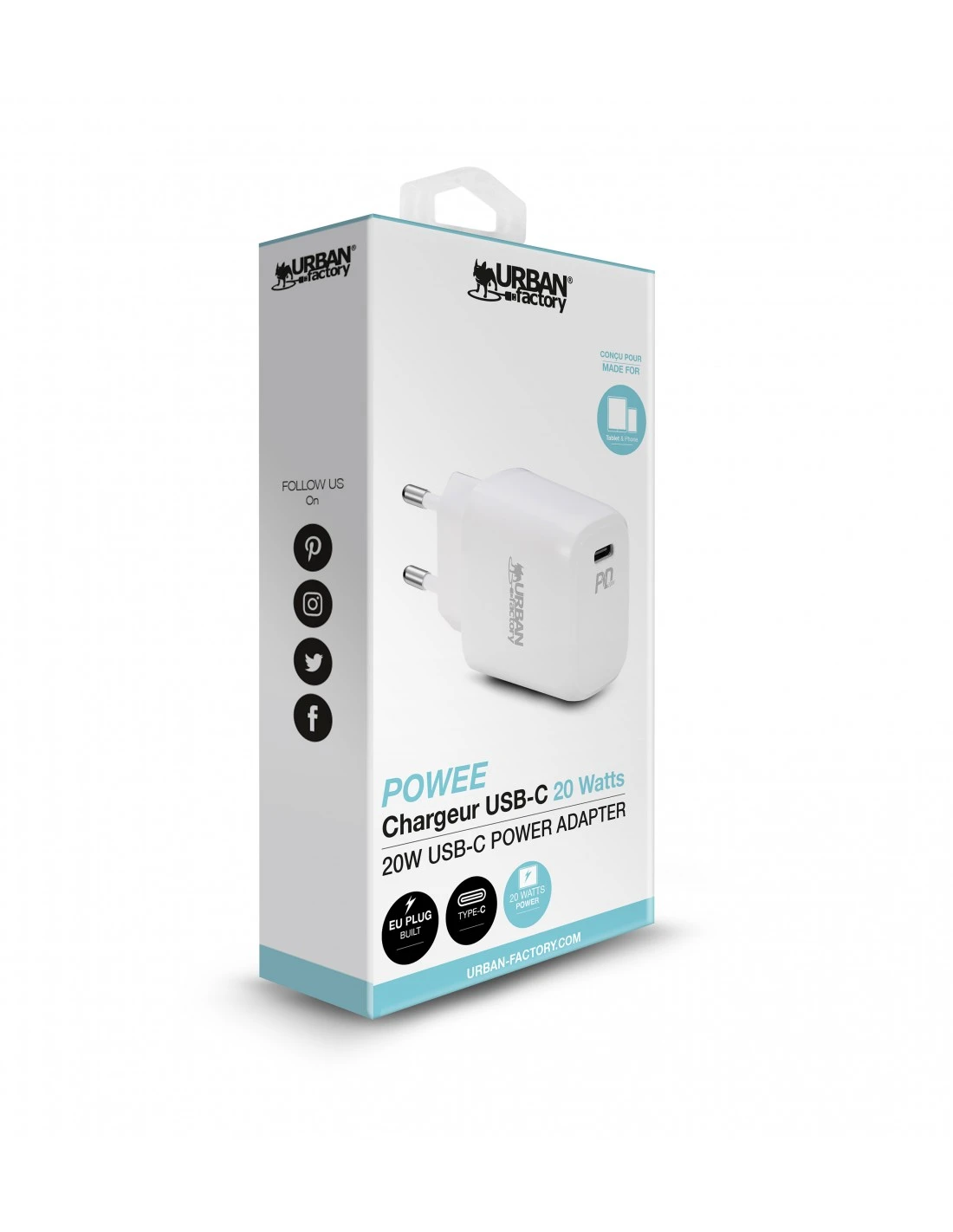 Urban Factory POWEE: CHARGEUR UNIVERSEL USB-C 20W